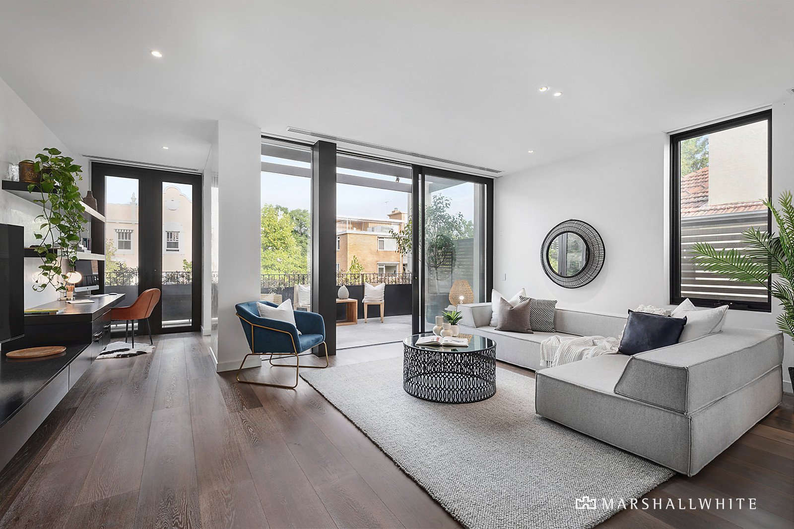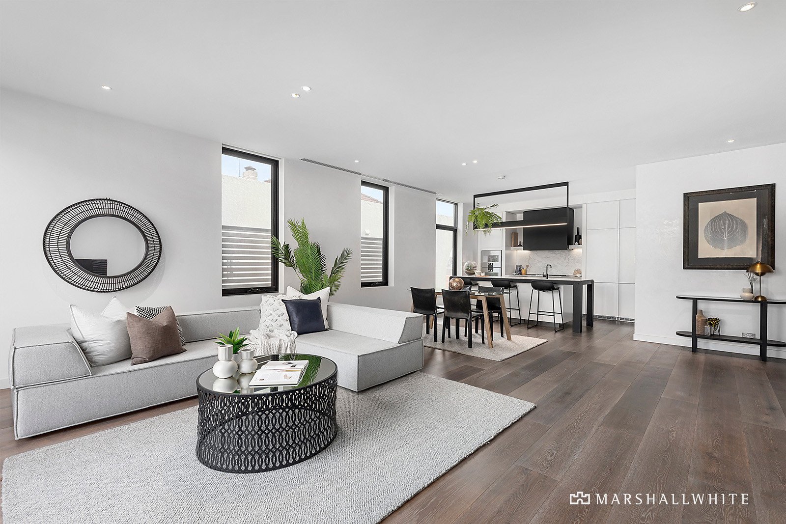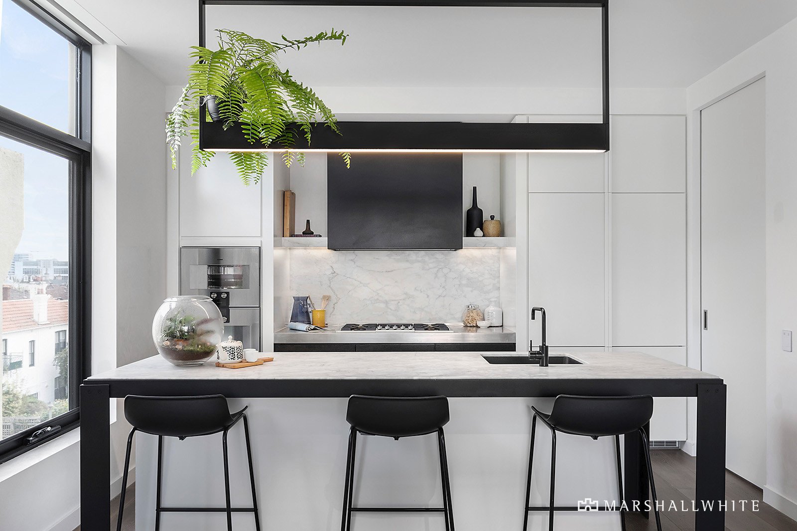 Inside under soaring ceilings, Venetian polished plaster walls, ultra-wide oak floors and natural stone finishes reflect the signature design flair of Lombard and Jack. The generous entrance foyer flows through to a palatial open plan living and dining room featuring a fabulous fitted study with bookshelves and a state of the art chef's kitchen appointed with marble island and splash back, stainless steel work-bench and premium Gaggenau and Miele appliances including integrated fridge/freezer. A spacious and private balcony is the perfect venue for outdoor dining and entertaining. The two stunning bedrooms both include built in robes and their own designer en suites finished with natural stone.