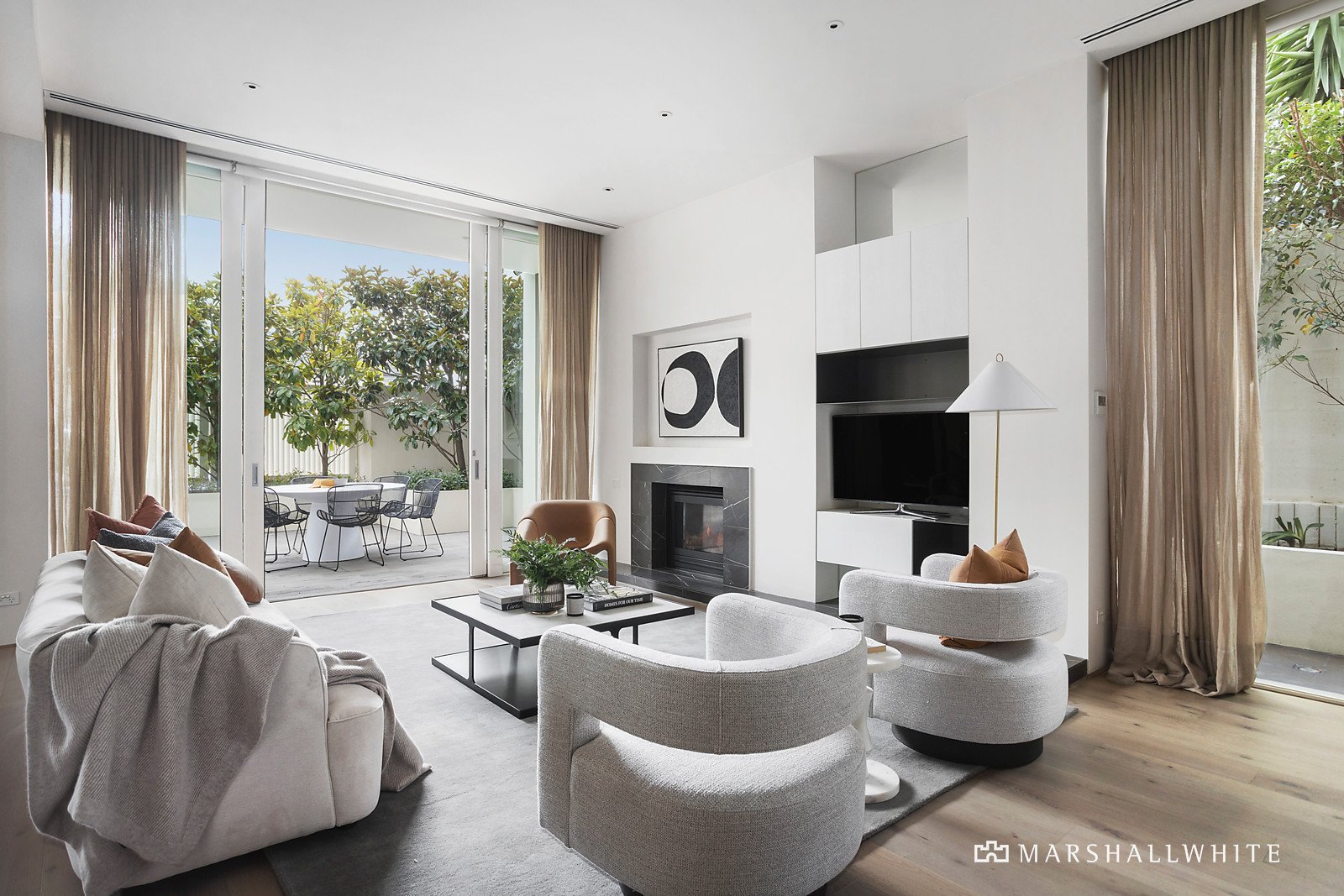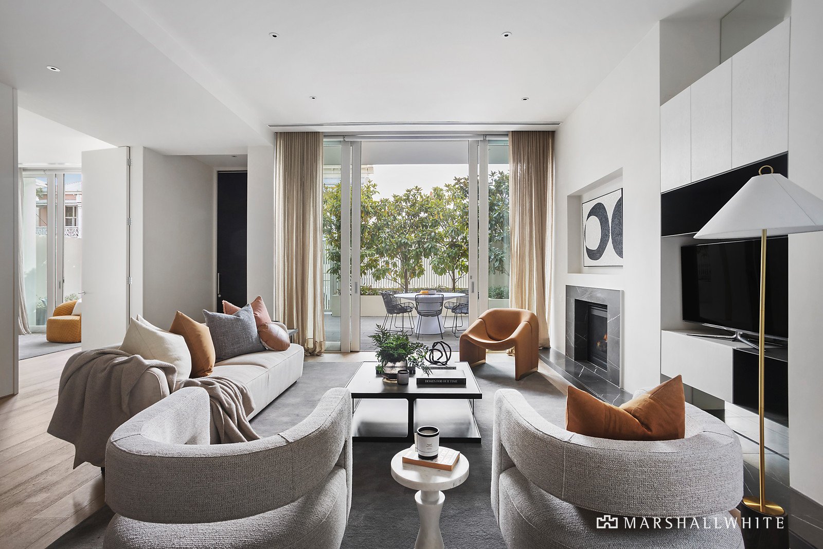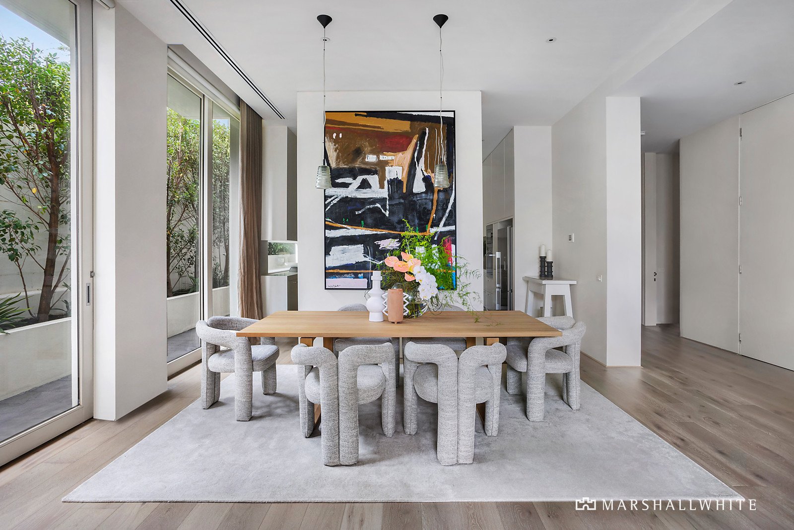 An elite position in the much sought-after Domain Precinct only metres to the Royal Botanic Gardens is an impressive backdrop for the luxurious proportions, lavish finishes and refined contemporary style showcased by this spectacular whole floor ground level boutique residence designed by Rob Mills.