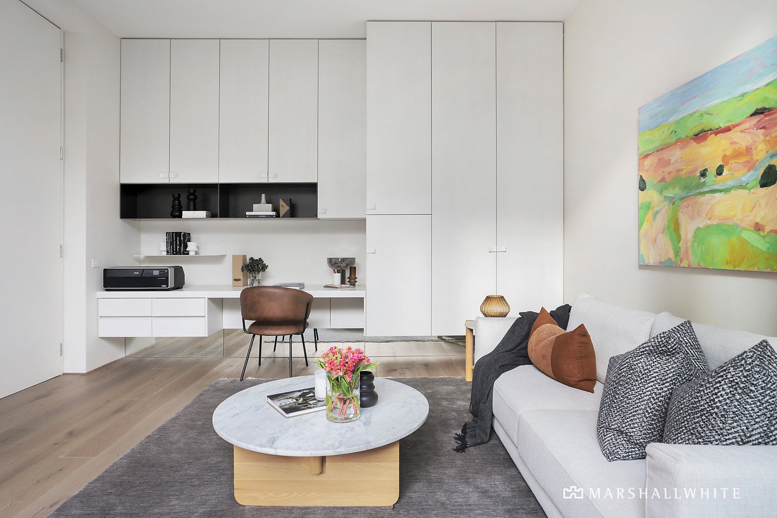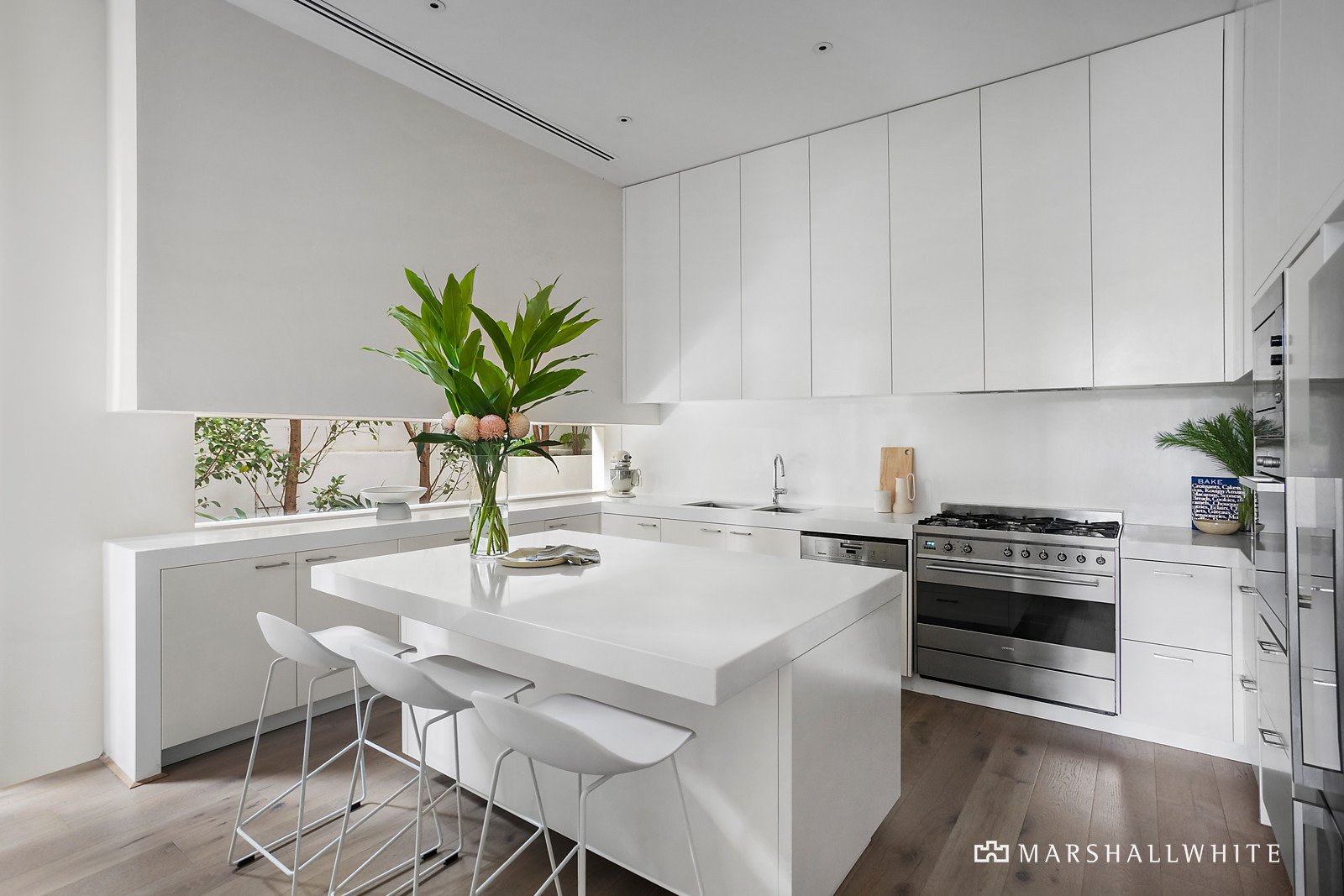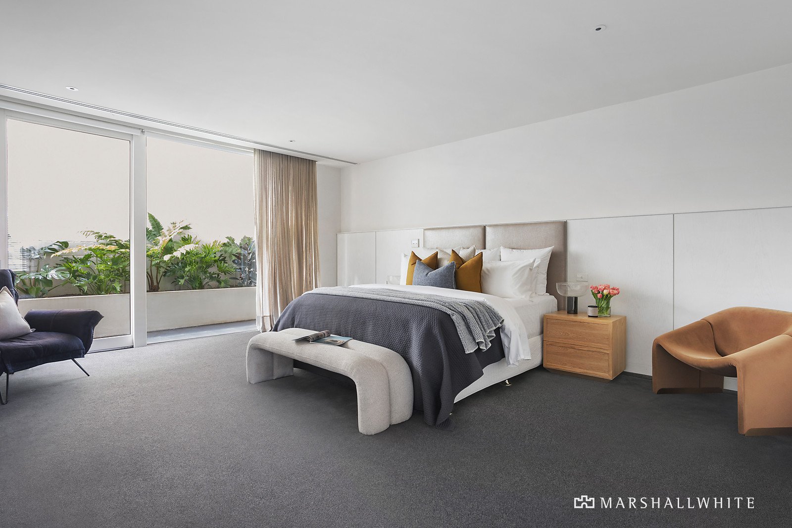 An elite position in the much sought-after Domain Precinct only metres to the Royal Botanic Gardens is an impressive backdrop for the luxurious proportions, lavish finishes and refined contemporary style showcased by this spectacular whole floor ground level boutique residence designed by Rob Mills.