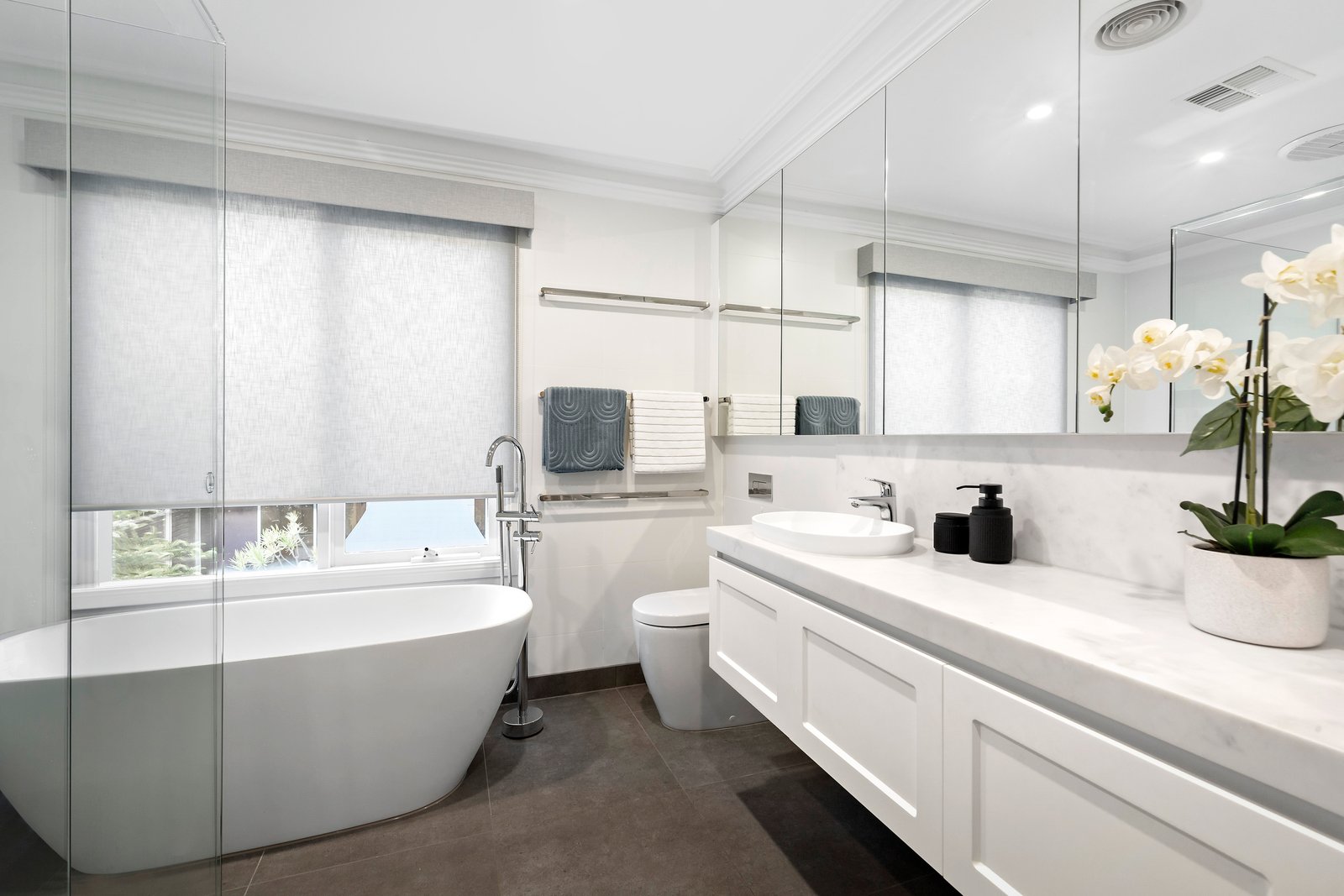Unfolding over a dual-level floor plan, the ground floor focuses on a seamless connection between living, dining, and the modern, updated kitchen with quality appliances. Upstairs unveils surprisingly generous dimensions, providing uncompromising comfort for complete rest and rejuvenation. The main bedroom with large WIR is a sanctuary of calming style; and two guest bedrooms with BIR’s are light filled and spacious. The designer bathroom emphasises its luxuriousness with a full-length shower seat and freestanding bath, wall-to-wall storage, supplemented by a guest powder room downstairs.