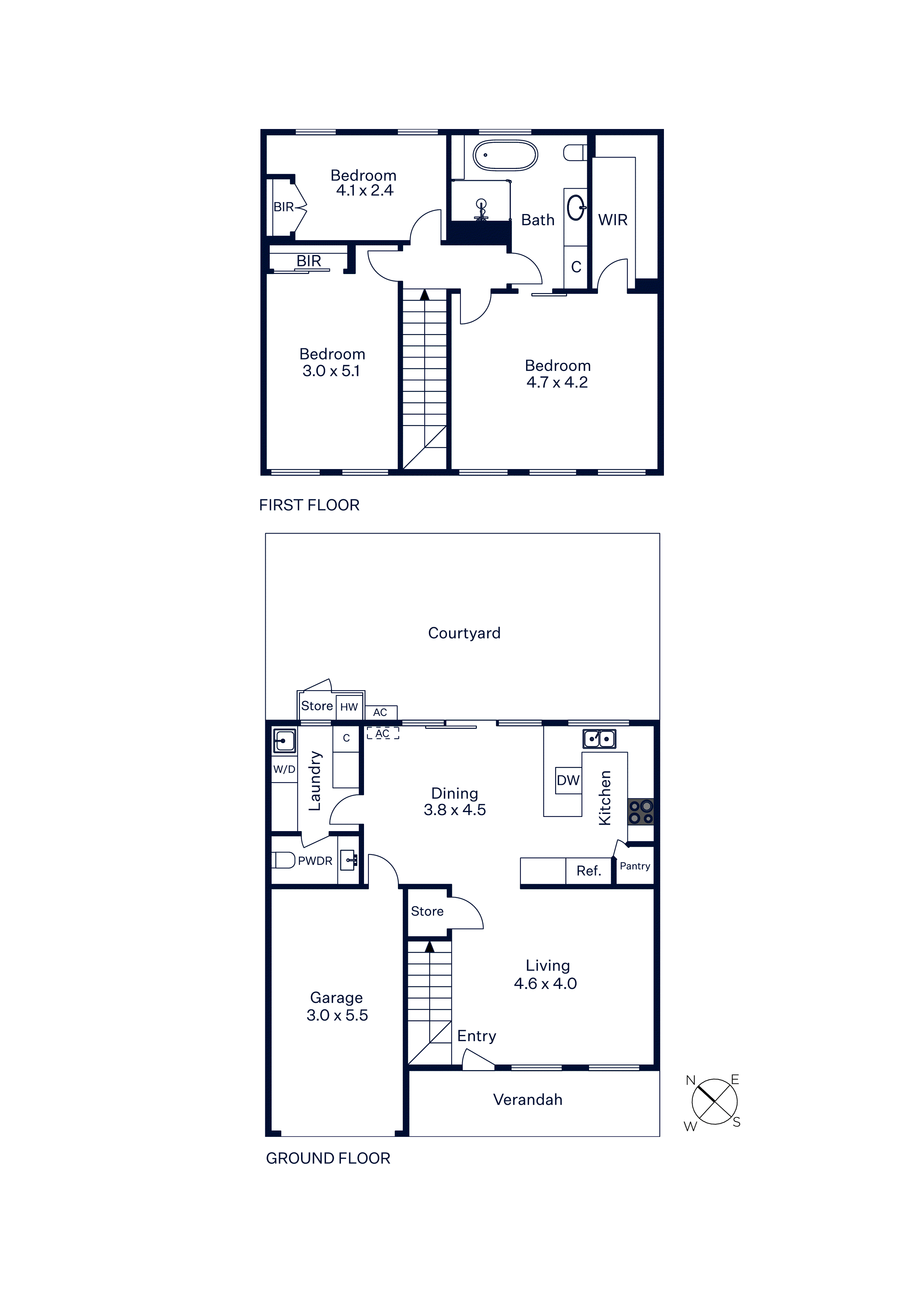 Practicality meets style with a full-sized laundry, equipped with abundant storage and a drying rack. Additional storage solutions extend to fitted shelving under the stairs—ideal for a wine rack, mezzanine shelving around the garage’s interior perimeter, and a concealed, built-in garden shed. Additional highlights include zoned ducted heating/cooling upstairs, sleek infrared heating panels (living room), split system air conditioning, electric blinds in the main bedroom and dining area.